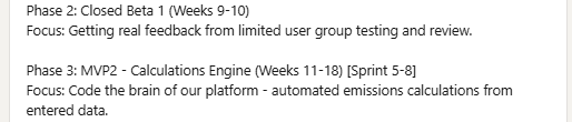 In a recent update I mentioned the Veridia Carbon platform main feature development had ‘paused’ while we work through Beta 1. As a deliverer of tech solutions for 26+ years Beta is always fun, because it rarely ends up being quite what you expect. As the platform at the MVP1 stage is essentially straight forward right now users are asking more about the problem it’s looking to solve, progressively across MPV1 and MPV3. Most of what we’re discovering in Beta 1 is a smattering of bugs (e.g. editing on filtering), insights into core reporting needs (less charts, more template narrative aligned to SBTi, CSRD, etc. That was a surprise) and questions to clarify the use cases for the solution (How To’s… coming soon via the platform)